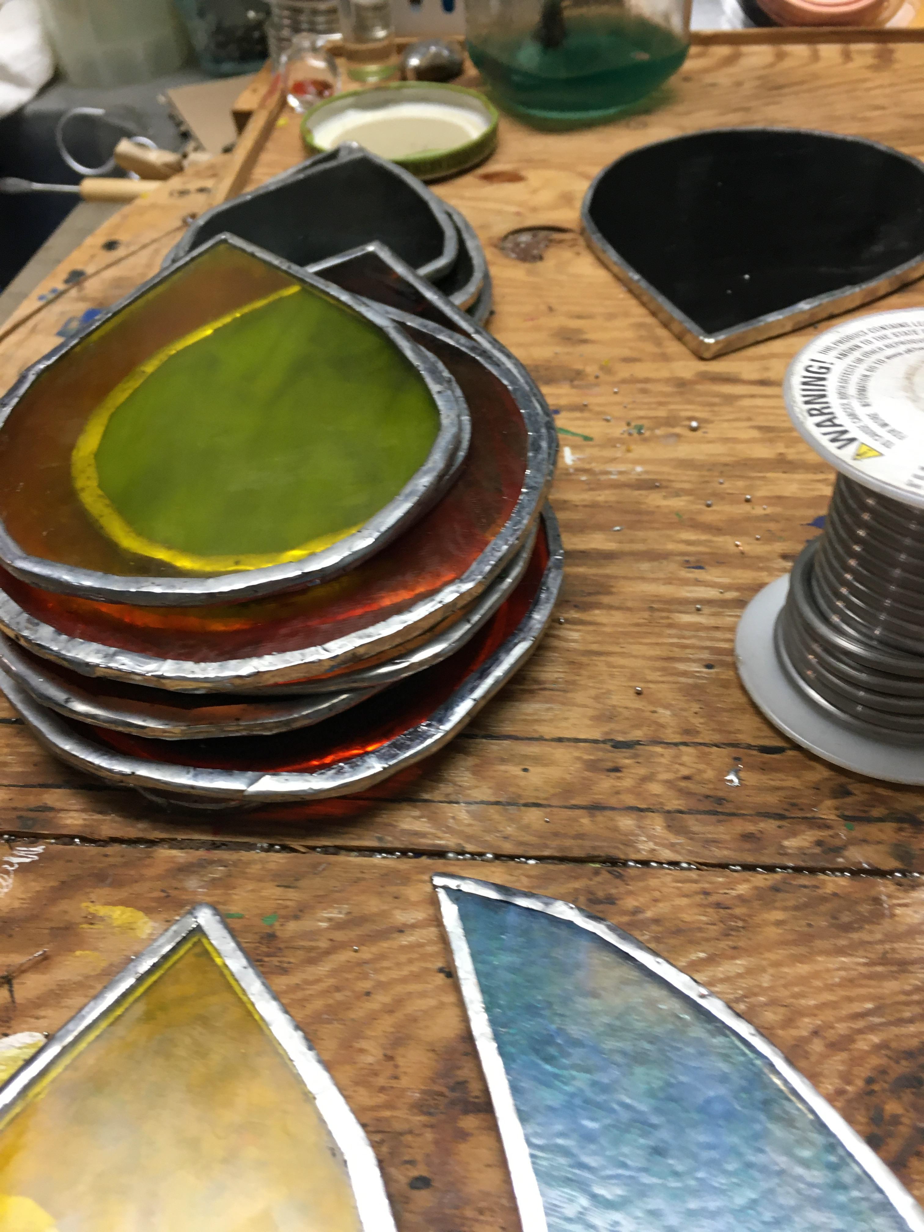 This collaboration was created with Misty’s father, Howard Post, who introduced her to stained glass and has collaborated on many other pieces together.